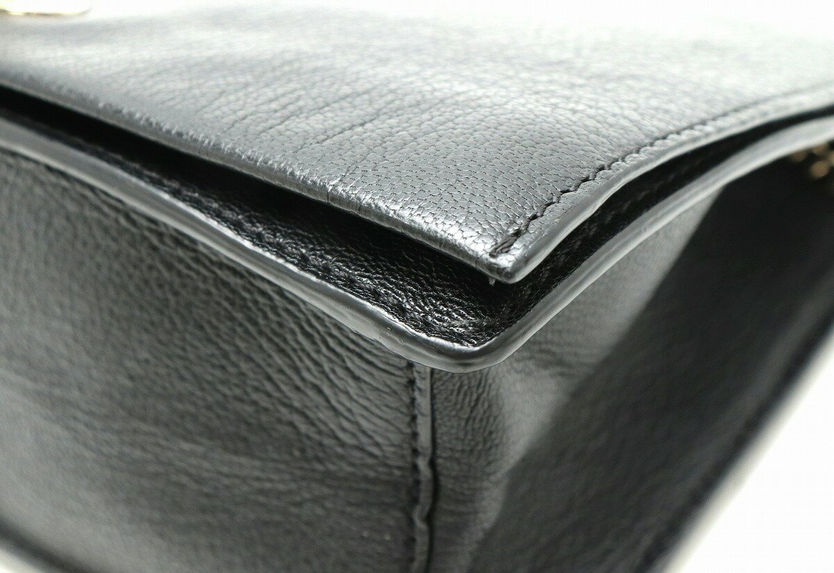 商品詳細 サイズ W21cm H15cm D5.5cm ショルダー長さ約101cm(調節不可)材質 レザーカラー ブラック/ゴールド仕様 内側ファスナーポケット1、小ポケット1付属品 保存袋 ショルダーストラップ コンディション 程度 中古A 外側 スレ、バニッシュにヒビワレ内側 スレ、薄汚れショルダー 小キズ金具 スレ、小キズ特記事項 なし コメント 目立つ難等は無く、一般的な使用感のあるお品物でございます。