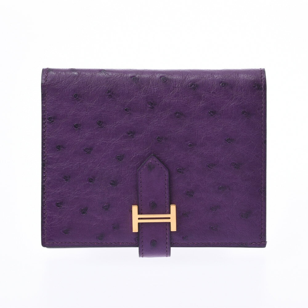 HERMES エルメス ベアン コンパクト ヴィオレ ゴールド金具 D刻印(2019年頃) ユニセックス オーストリッチ 二つ折り財布 新同 中古 銀蔵